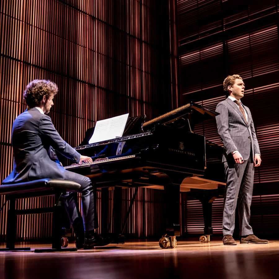 Austrian-British soprano Anna Prohaska and pianist Erik Schneider brought their songs to our Grote Zaal on the 10th of May. Twenty-five songs about war, soldiers, the executed and the front; a deeply moving concert. Jitze van der Land (baritone) and Daan Boertien (piano) were the support act.