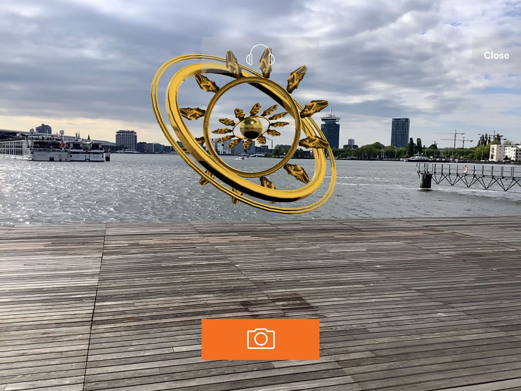 De app Augmenting Andriessen is gedurende het Andriessen Festival te gebruiken in het Atrium (2e etage) en op het terras van het Muziekgebouw. Installeer de app uit de App of Play Store op uw smartphone of iPad.