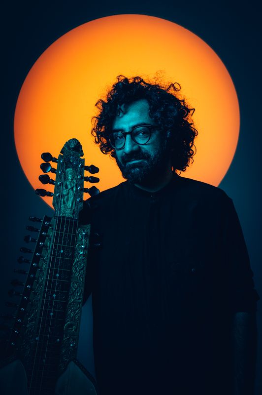 Hamid Reza Behzadian Indiase gitaar, mondharmonica, lapsteel