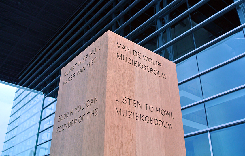 Bij het tienjarig bestaan van Muziekgebouw aan 't IJ in 2015 werd voor zijn oprichter Jan Wolff (1941 – 2012) een monument opgericht aan de oever van het IJ. De opening vond plaats op 22 augustus, de sterfdag van Wolff. Voor dit monument, een interactieve installatie genaamd Huil van de Wolff, schreef componist Martijn Padding een compositie, die wordt ‘aangestuurd’ door meteorologische data rond het gebouw als windsnelheid en luchtvochtigheid. Iedere 22e van de maand om 20.00 uur is Huil van de Wolff te horen onder de grote luifel aan voorkant van het gebouw.
