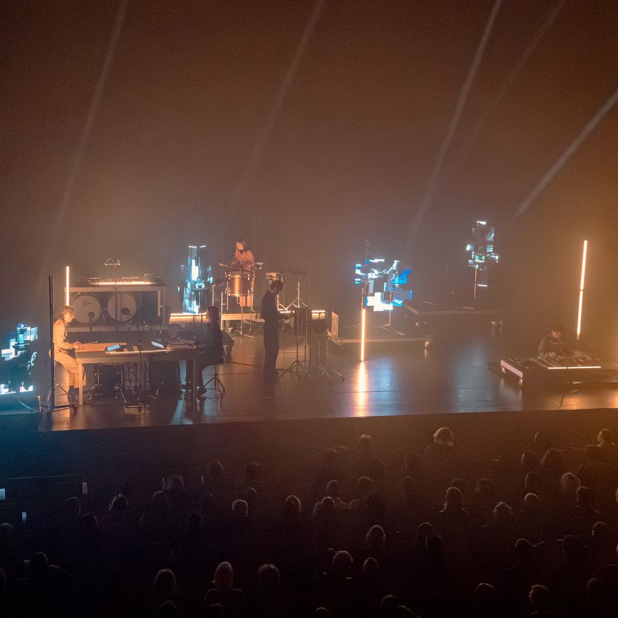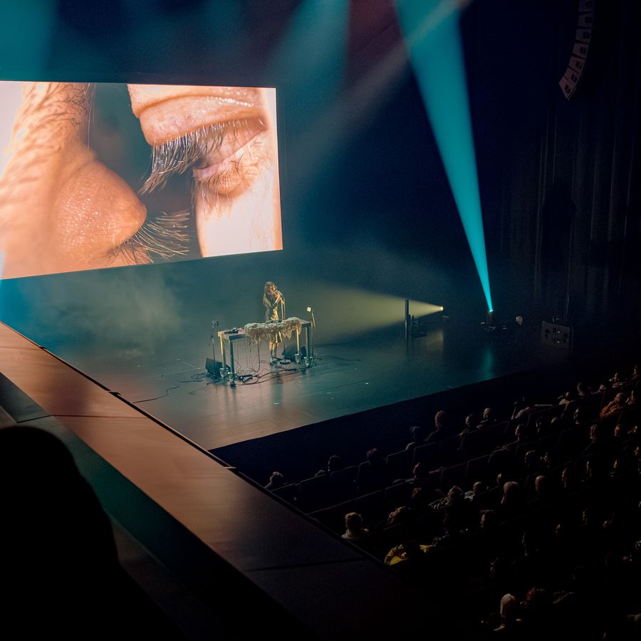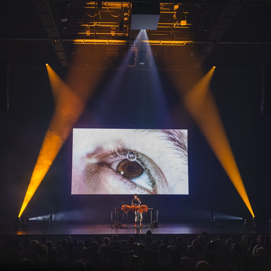 Tijdens alweer de negende editie van FIBER X The Rest is Noise (2026) stonden in de Grote Zaal twee indrukwekkende live shows centraal, met spectaculaire uitvoeringen van Ways of [ ] van Zeno van den Broek en een liveoptreden van componist en multidisciplinair kunstenaar Lyra Pramuk, die haar tweede album Hymnal presenteerde.
